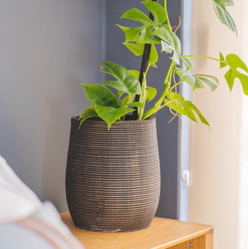 Nuestras macetas están hechas a mano de un compuesto de fibra de arcilla, lo que les da una apariencia natural, acabado mate y aspecto similar al concreto, pero más liviana y duradera.