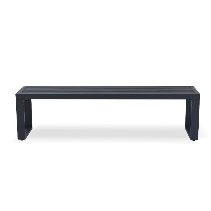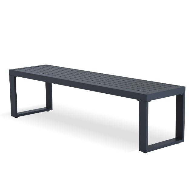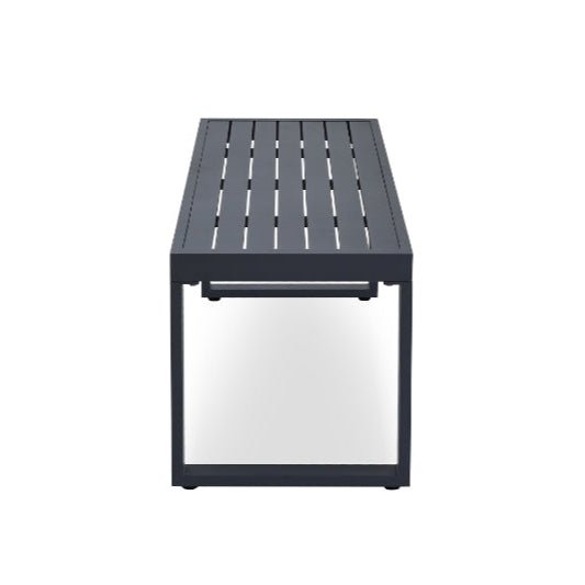 Banca de terraza Piuquén 100% para exterior, fabricada en aluminio con acabado color grafito.