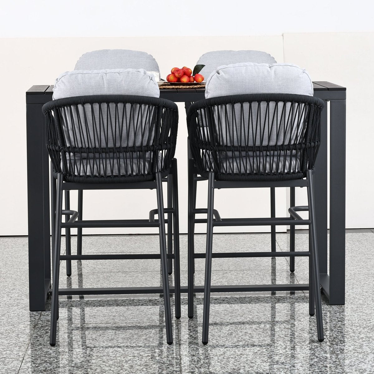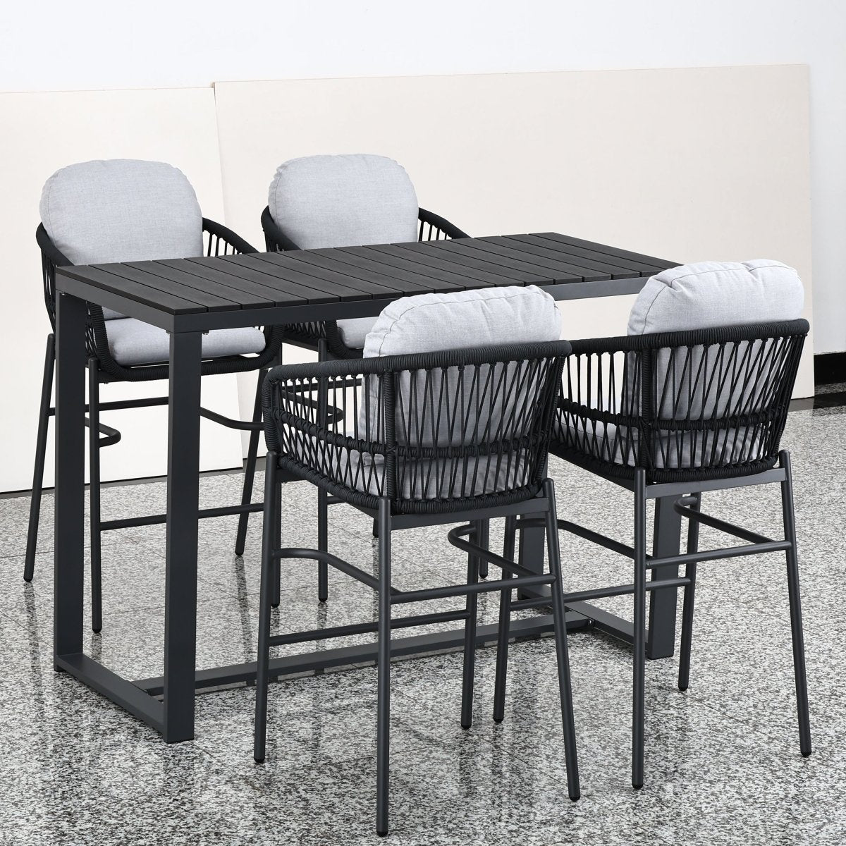 Juego de bar alto para 4 personas con estructura de aluminio y cuerda náutica