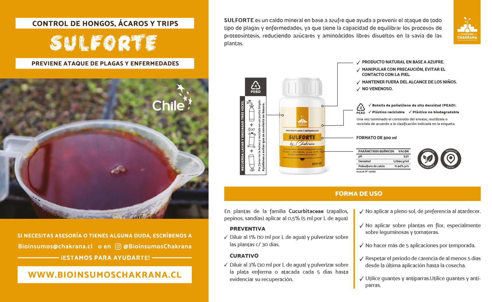 SULFORTE es un caldo mineral en base a azufre que ayuda a prevenir el ataque de todo tipo de plagas y enfermedades, ya que tiene la capacidad de equilibrar los procesos de proteosintesis, reduciendo azúcares y aminoácidos libres disueltos en la savia de las plantas.